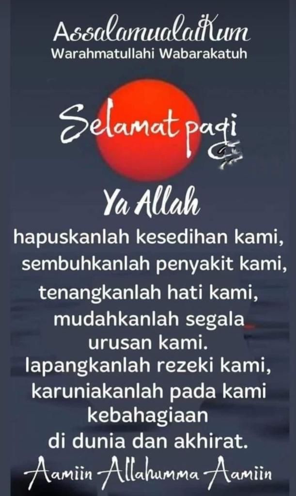 Kami pohon kpdmu Ya Allah..kau ambil kembali *Wabak Covid-19* dr muka bumi ini Ya Allah..n kembalikan ia ketempat asalnya..dan juga kami bermohon agar disembuhkan n dipulihkan kembali kesihatan mereka yg dijangkiti Covid-19 ini Ya Allah..sesungguhnya engkau Maha Berkuasa lagi Maha Mengasihani akan hamba2nya..